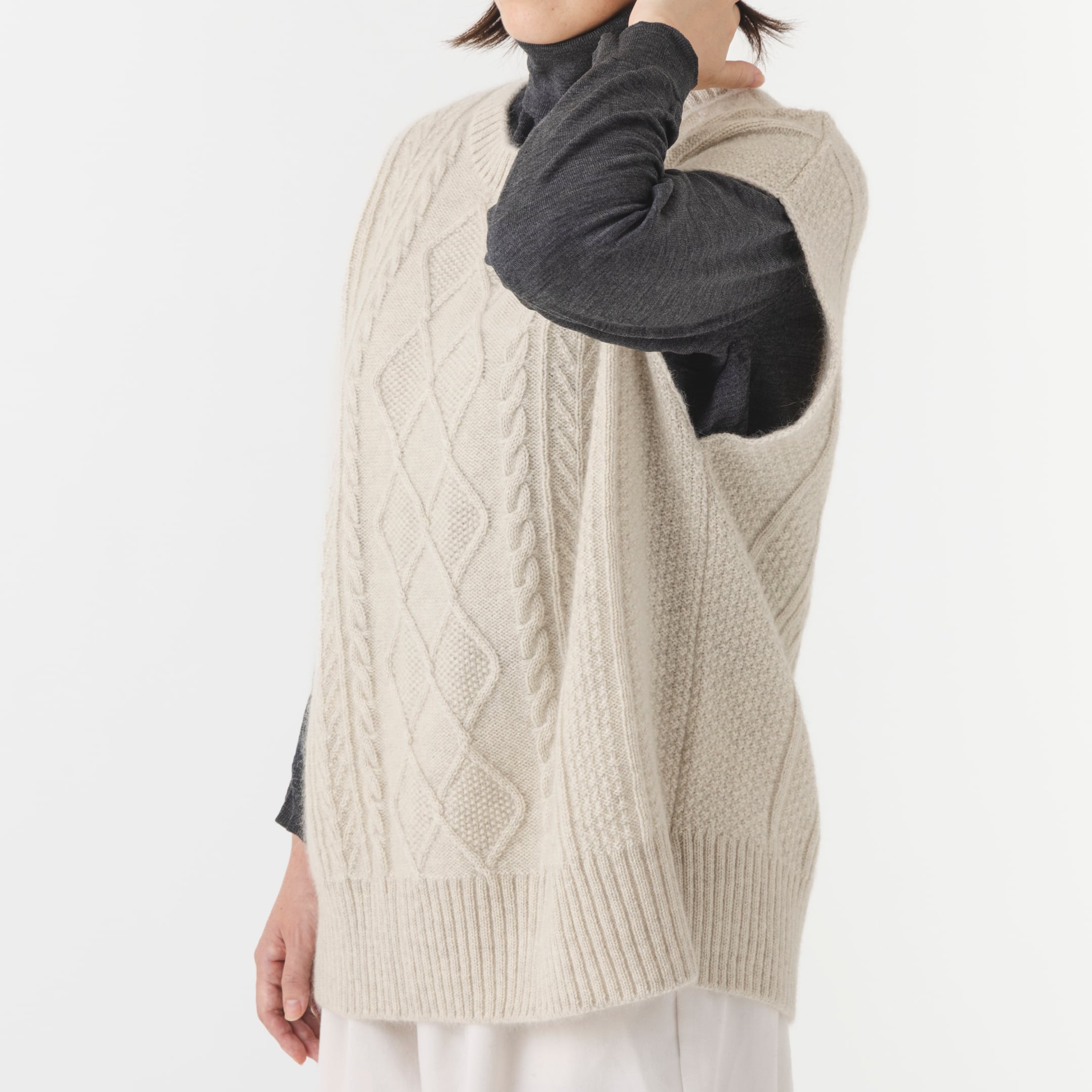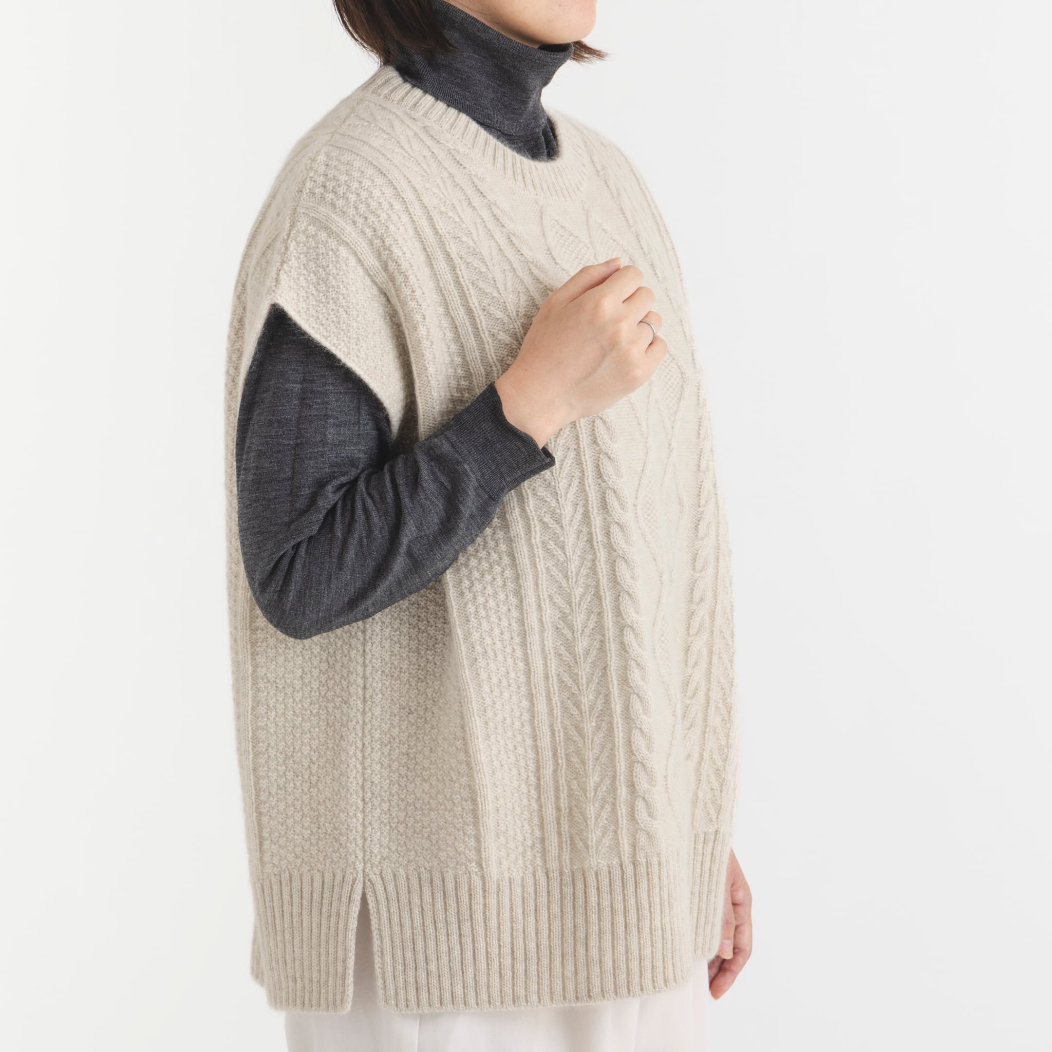 ヤク アランニットベスト Yak Aran Knit vest / ナチュラル
